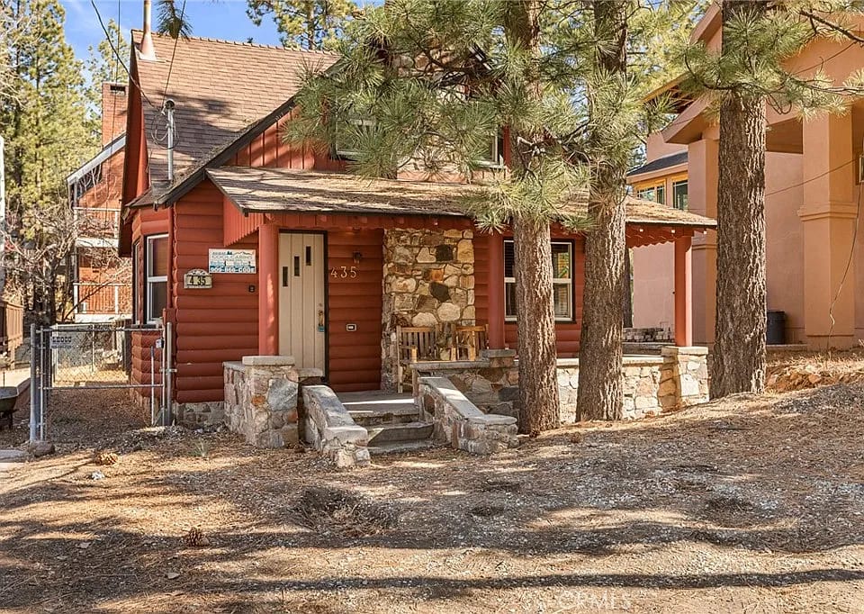 A charming A-frame log cabin with whimsical storybook character, perfectly positioned for mountain living just steps from Big Bear Lake and fully furnished for immediate enjoyment.