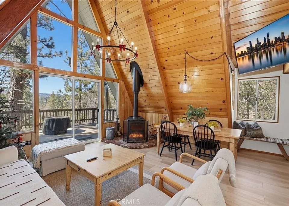🏔️ Cathedral ceilings with lovely light and panoramic views of the lake and San Gorgonio