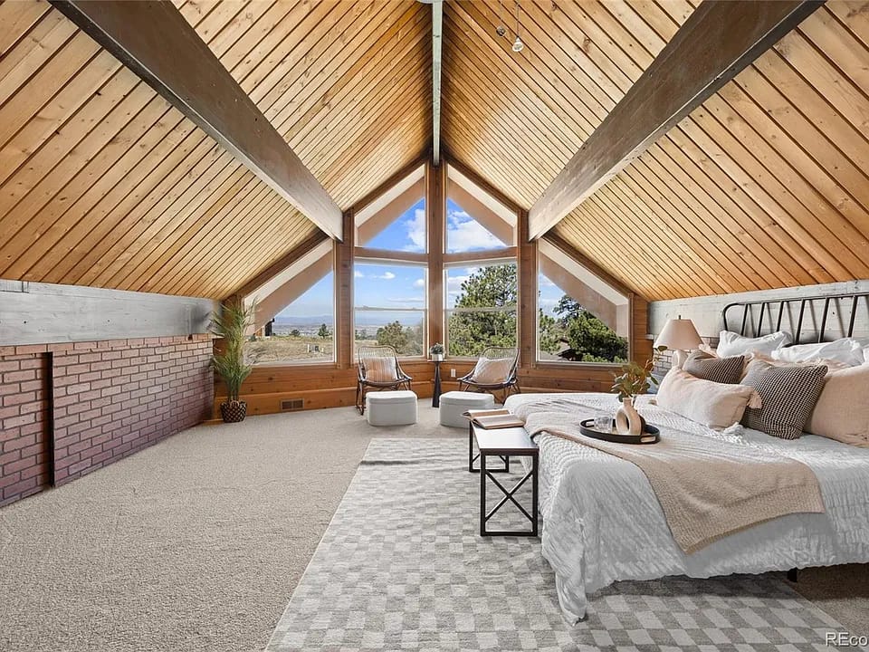 π An iconic A-frame in The Pinery with mountain views, a sunset deck, and unforgettable Colorado charm on a corner lot.