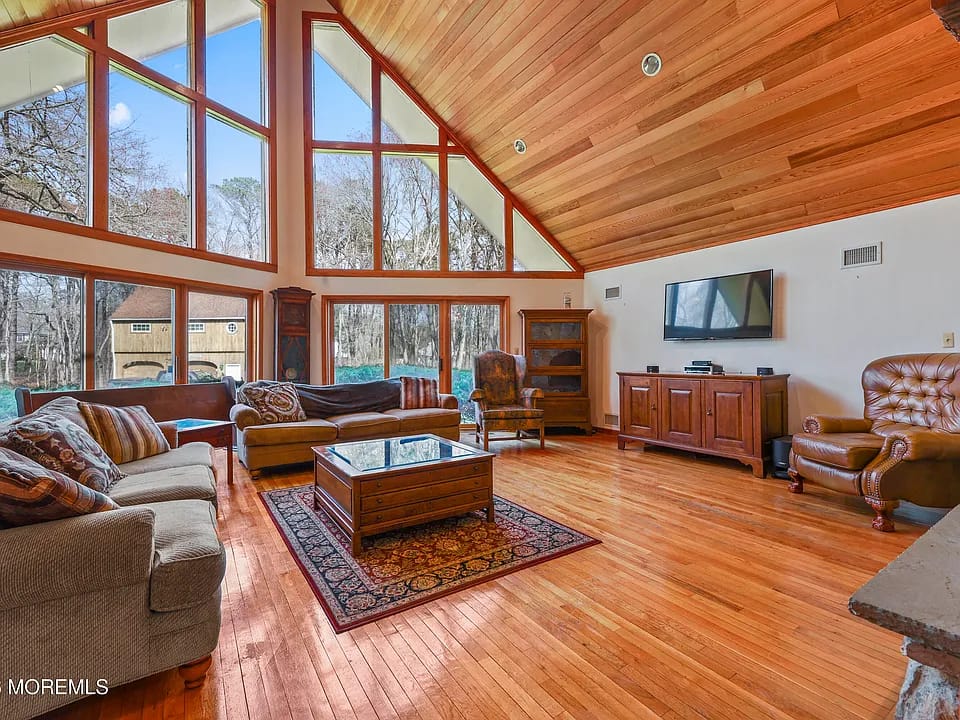 πͺ Floor-to-ceiling glazing filling the cathedral-ceilinged living space with natural light