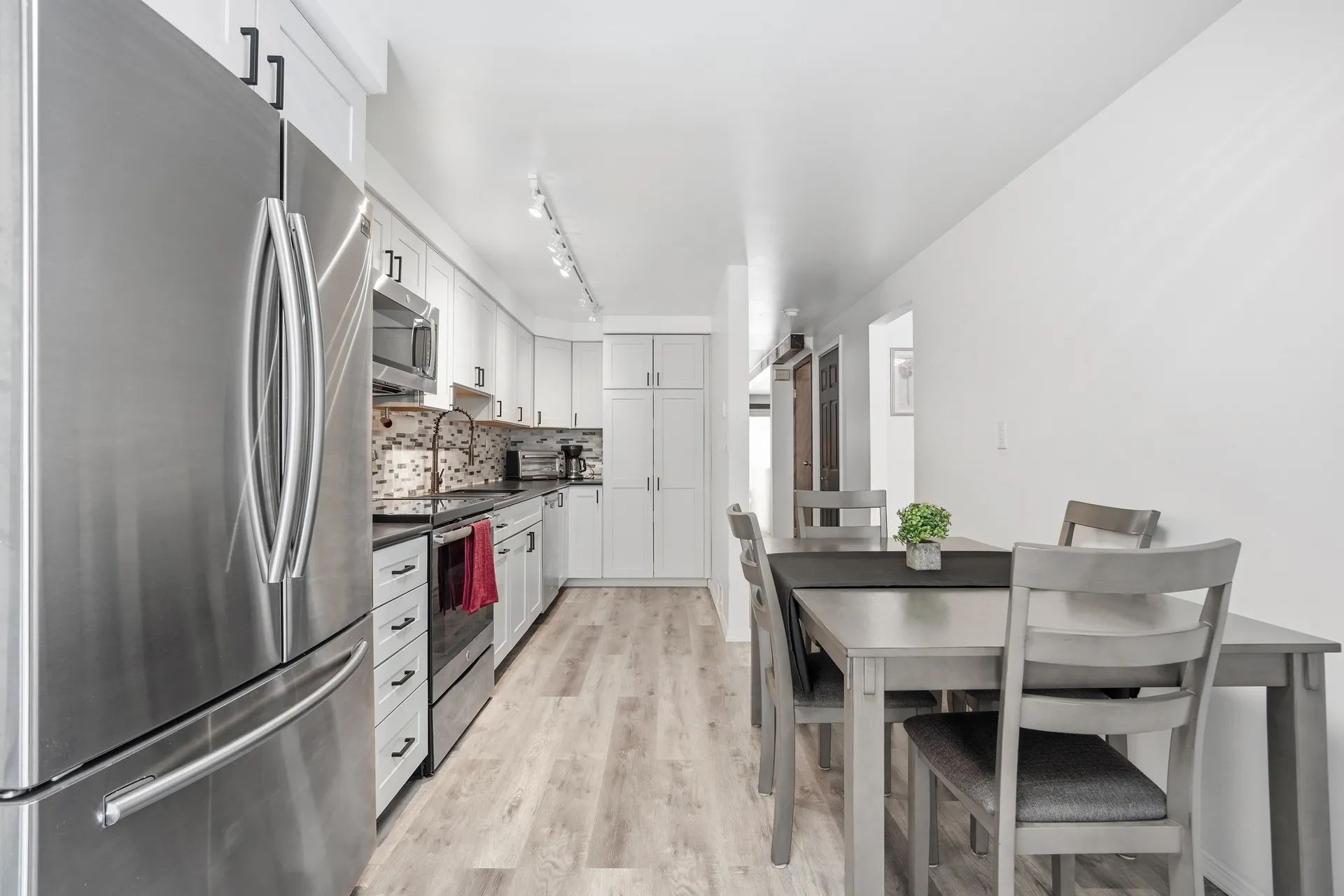 🍳 Updated kitchen with soft-close drawers, stainless steel appliances, and custom tile backsplash