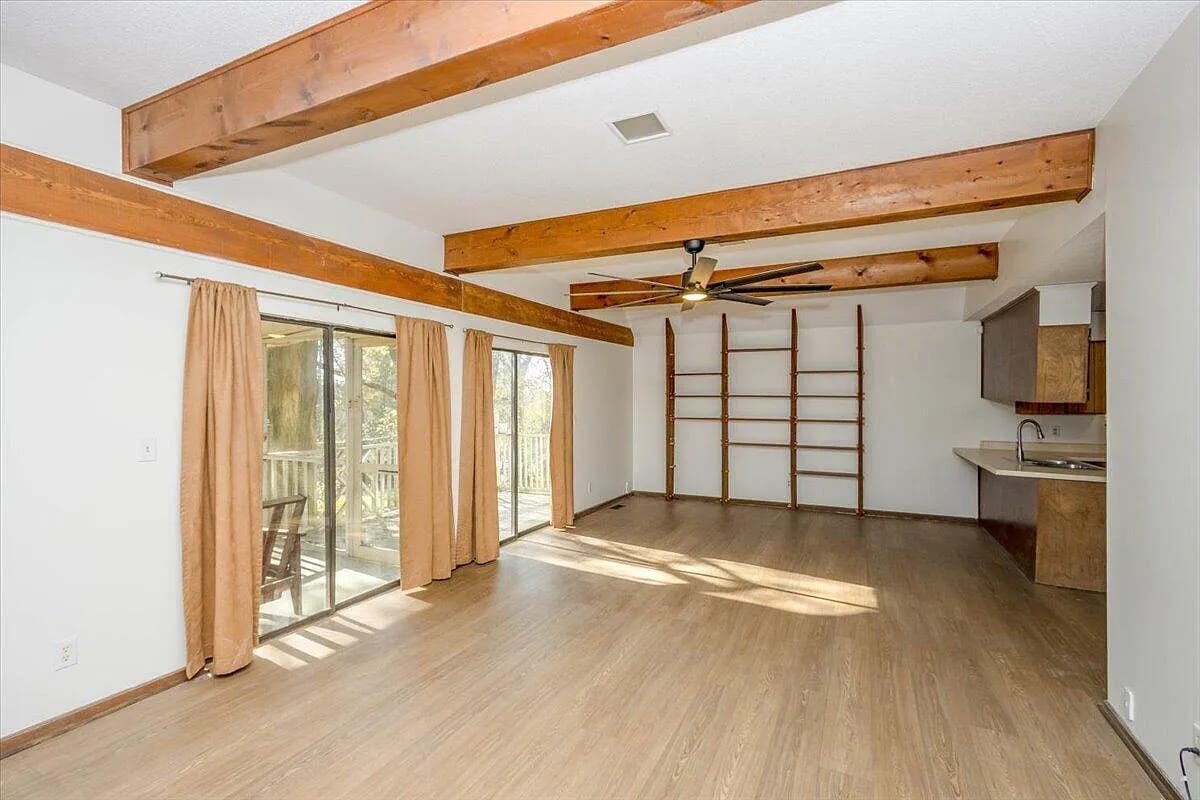 🔥 LED-accented exposed beams, granite counters, and custom tile showers