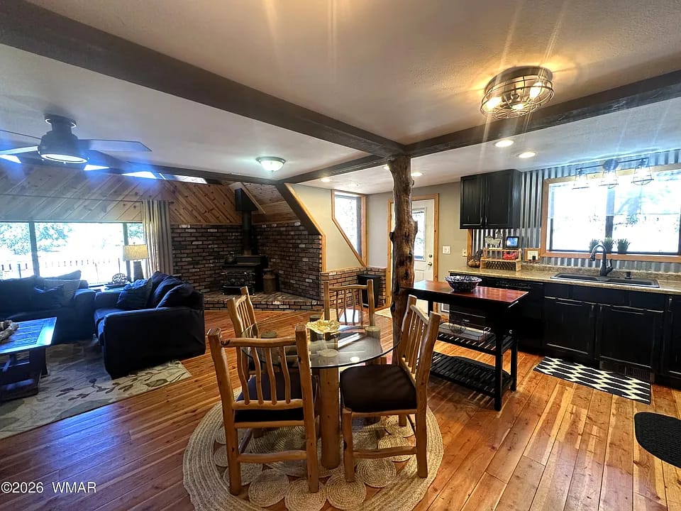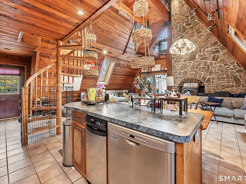 🔥 Cozy wood stove and soaring ceilings with abundant natural light
