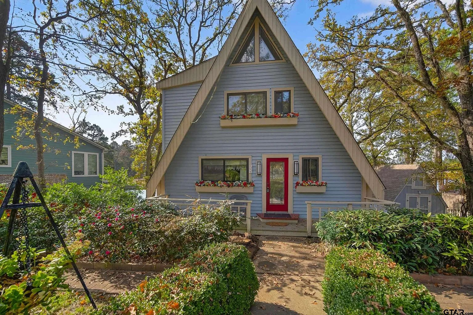 A charming three-story A-frame in an exclusive gated community, offering stunning lake views from every floor and a blank canvas for your personal style.