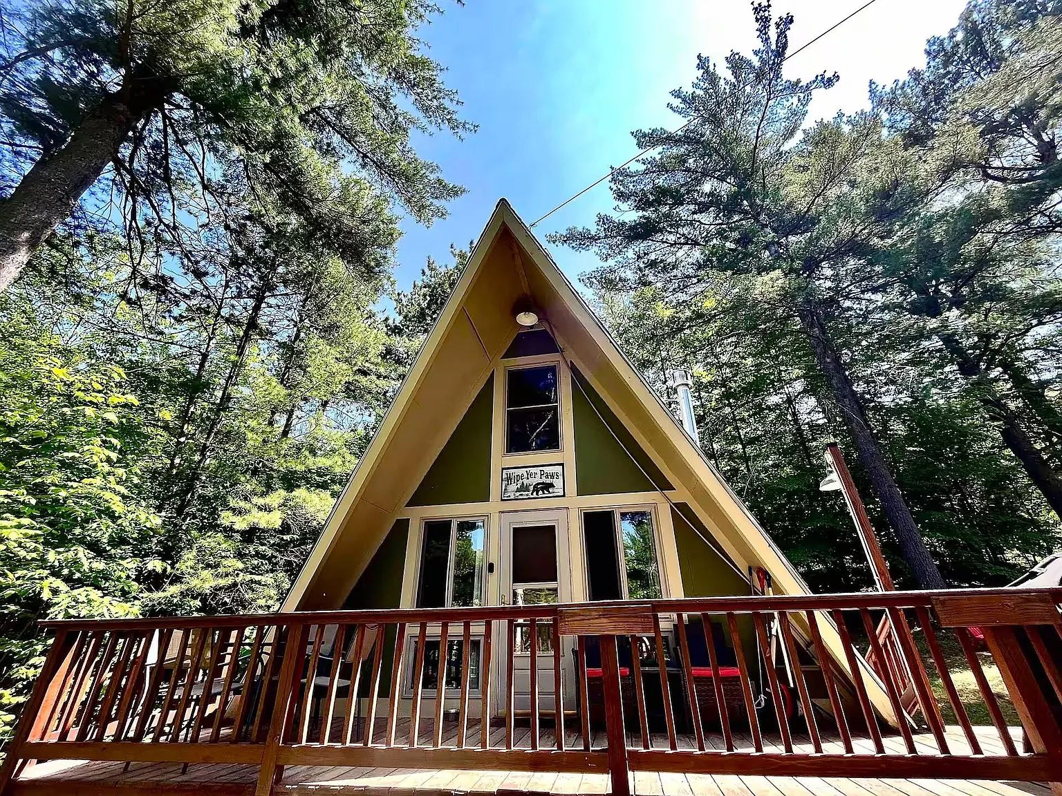🎣 A turnkey 1983 A-Frame on a private wooded lot with Gold Medal fishing waters nearby.